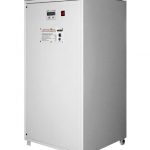 Широкий температурный диапазон (от ‒ 40°С до +40°С) допускает установку стабилизатора в неотапливаемых помещениях, а также на открытом воздухе, но обязательно в специальном металлическом шкафу для защиты от дождя и снега.