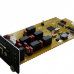 Карта сухих контактов позволяет удаленно отслеживать состояние ИБП путем получения дискретных сигналов при срабатывании реле. Контакты реле гальванически не связаны с электрическими цепями ИБП. Для получения необходимых сигналов необходимо использование внешнего источника питания. Так же обеспечивается возможность удаленного отключения ИБП с помощью подачи ссигнала на соответствующий порт. Использование релейных контактов позволяет интегрировать ИБП в системы локальной диспетчиризации на объектах заказчика.
